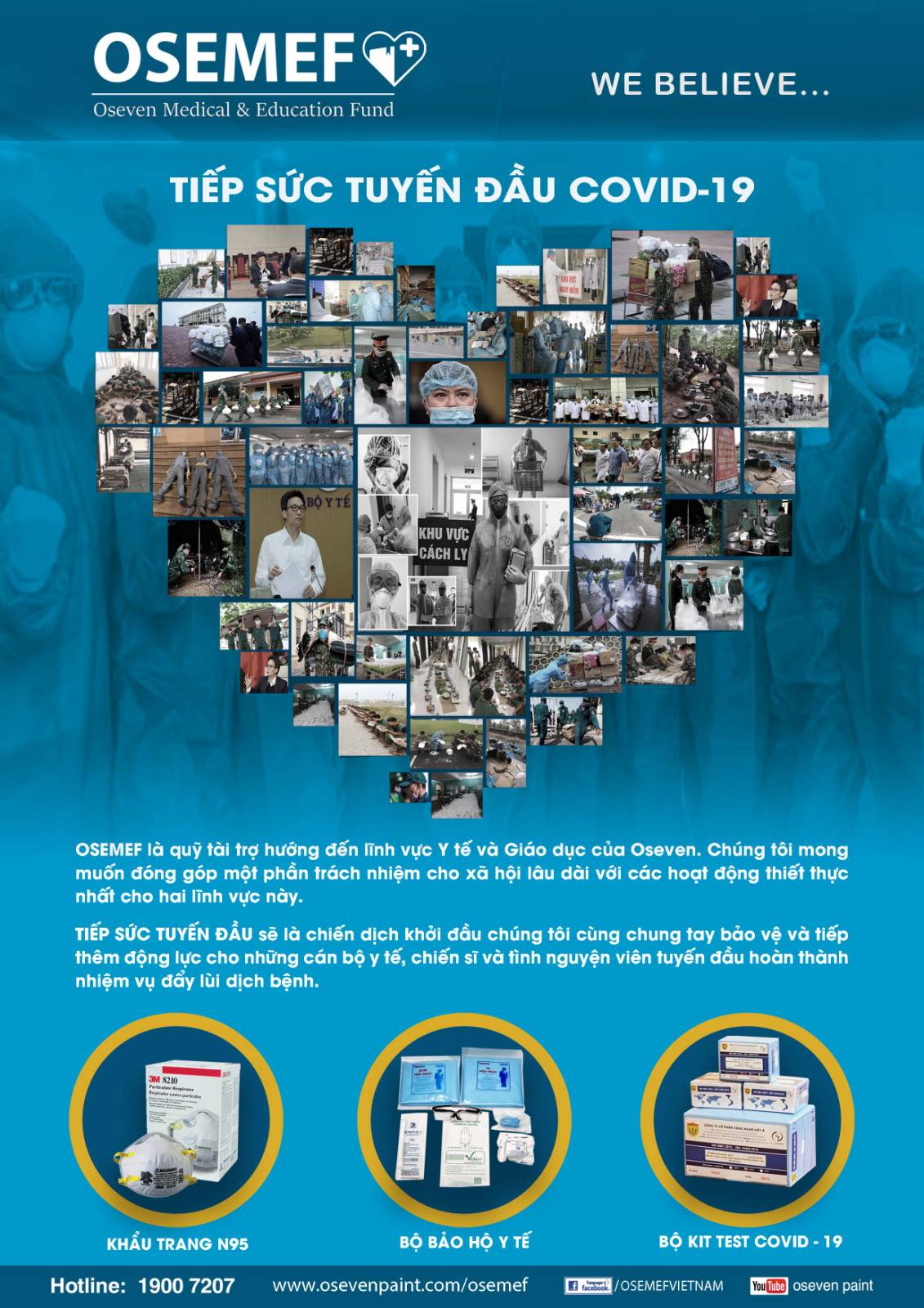 Starting from an understanding of the sacrifices and hardships of the frontline workers, OSEMEF launched the "COVID-19 Frontline Support" campaign to bring necessary medical equipment to hospitals and isolation centres with a total value of over VND 1.5 billion. This is also the starting campaign of Oseven Health & Education Fund (OSEMEF).